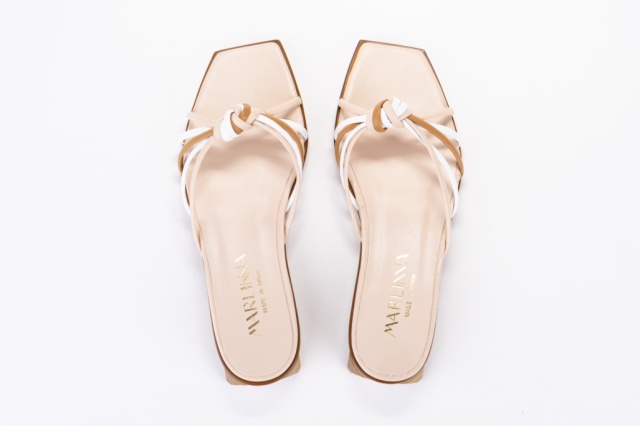 Esta sandalia de piel con tacón, piel en color metal pink blanco rojokenia. Tiras delanteras con un diseño único para estabilizar tu pie ¡Es comodidad absoluta!
