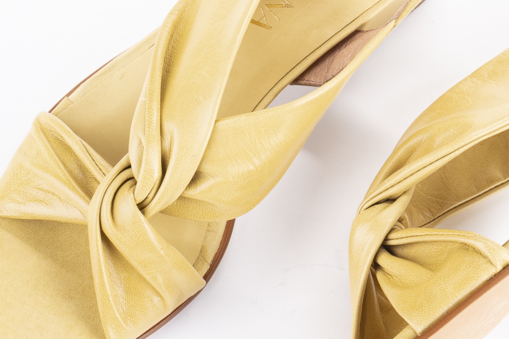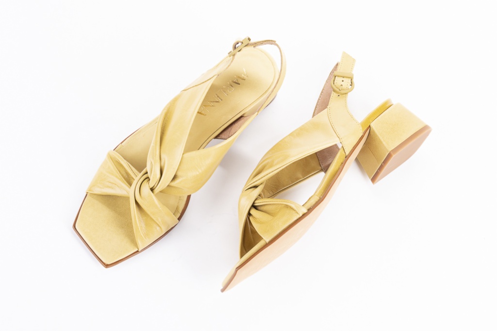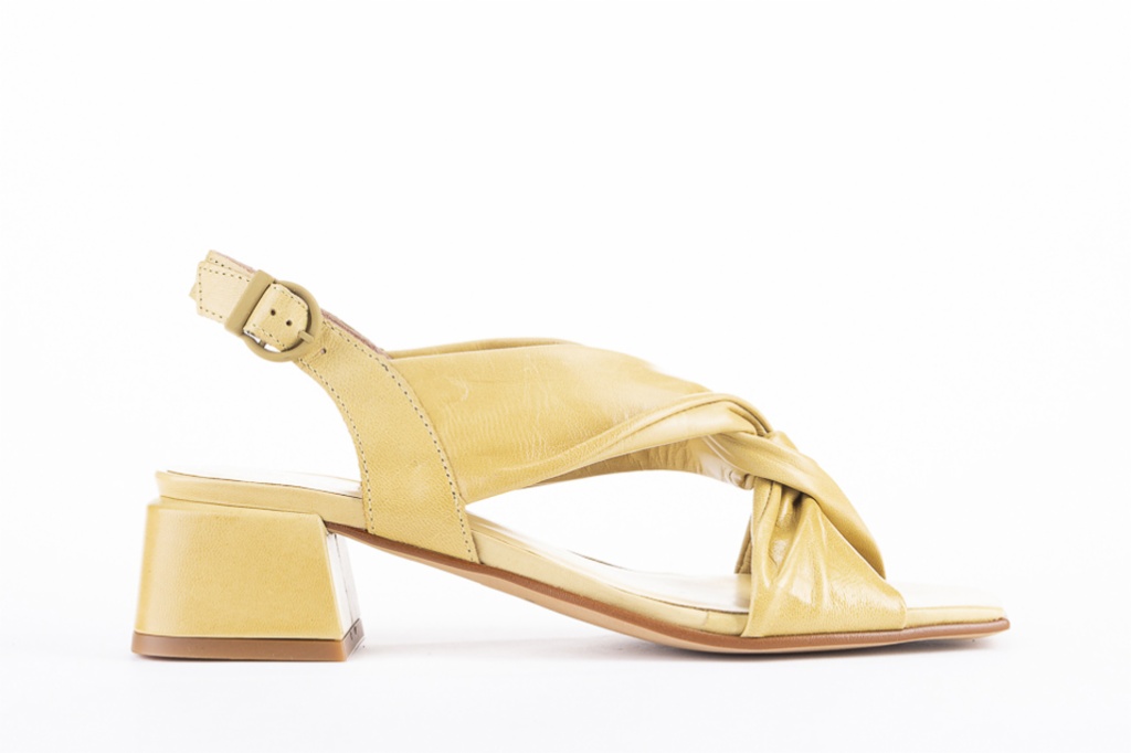 Este calzado de piel con tacón tipo sandalia para mujer en color pistacho. Tira cruzada delantera para estabilizar tu pie y cierre en la parte de atrás para mayor sujeción.