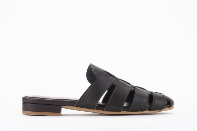 Sandalia plana en piel color marrón tipo romana y destalonada. ¡Top Tendencia!