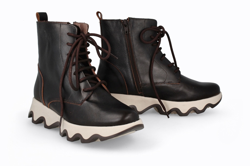 Botines que combinan un diseño moderno con comodidad excepcional. Su suela ondulada añade estilo y estabilidad, mientras que el ajuste alto brinda soporte y una apariencia elegante. Perfectas para quienes buscan funcionalidad y moda en un solo calzado.