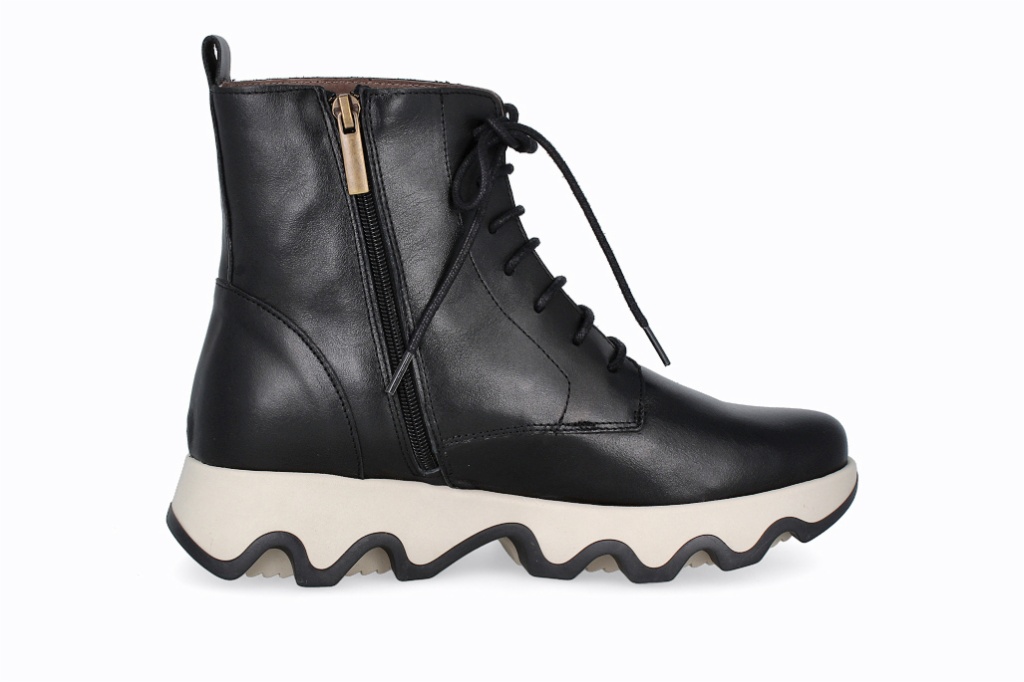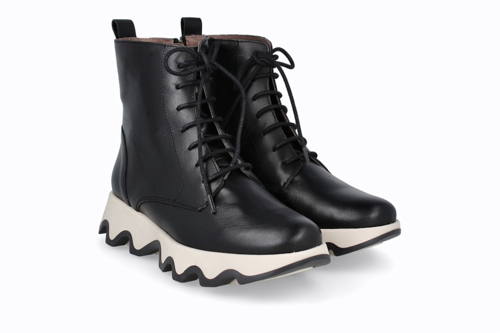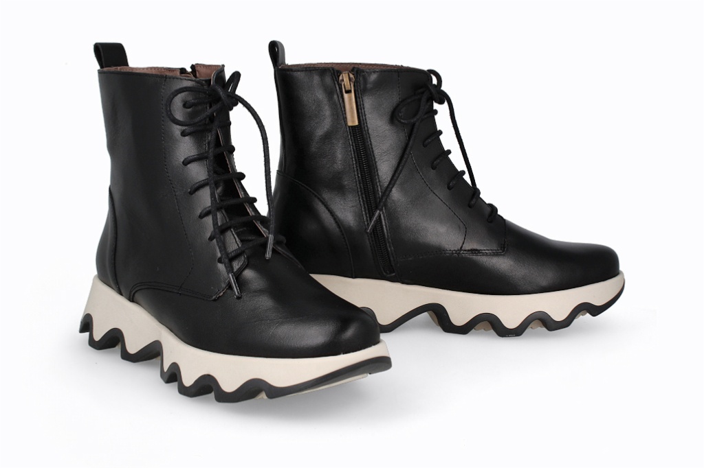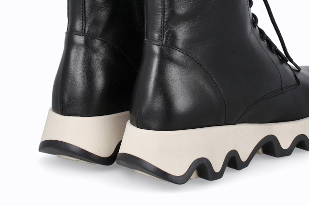 Botines de piel que combinan un diseño moderno con comodidad excepcional. Su suela ondulada añade estilo y estabilidad, mientras que el ajuste alto brinda soporte y una apariencia elegante. Perfectas para quienes buscan funcionalidad y moda en un solo calzado.