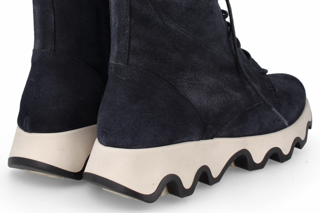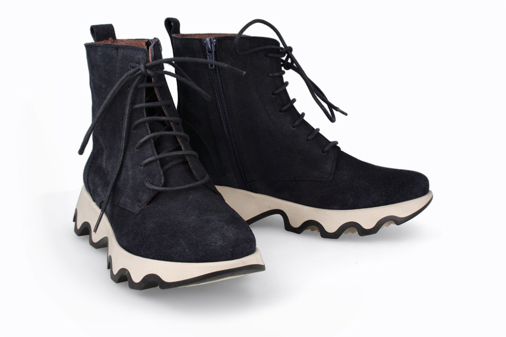 Botines negros de licra que combinan un diseño moderno con comodidad excepcional. Su suela ondulada añade estilo y estabilidad, mientras que el ajuste alto brinda soporte y una apariencia elegante. Perfectos para quienes buscan funcionalidad y moda en un solo calzado.