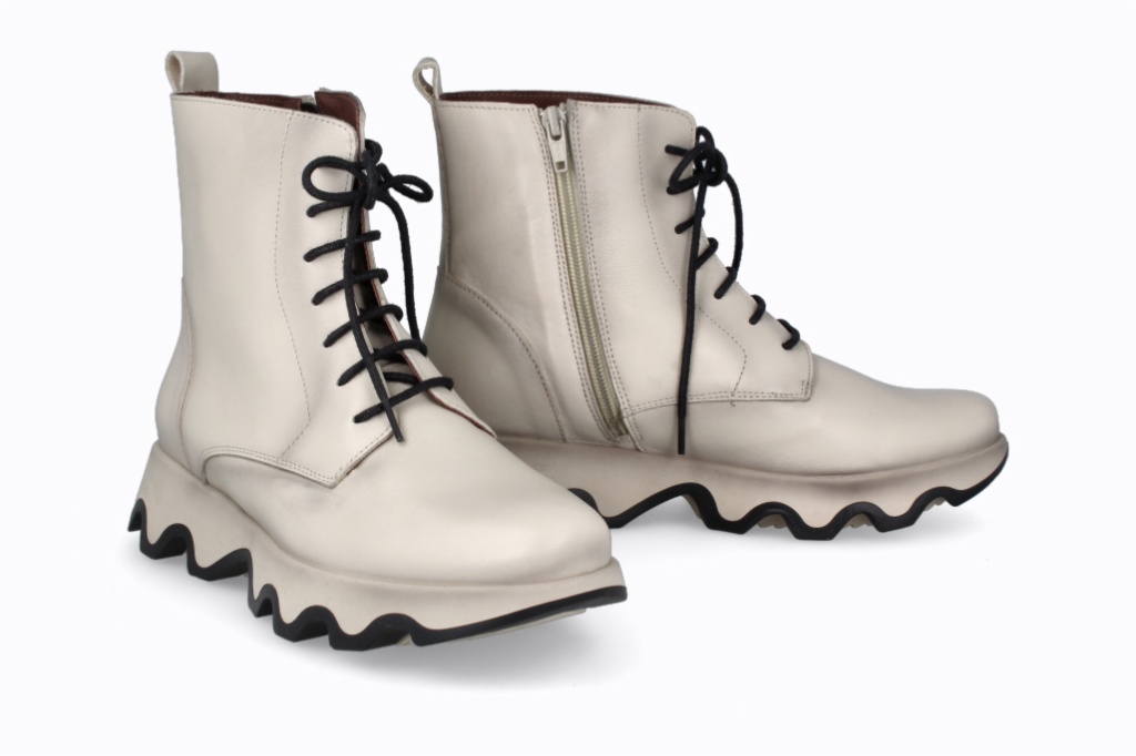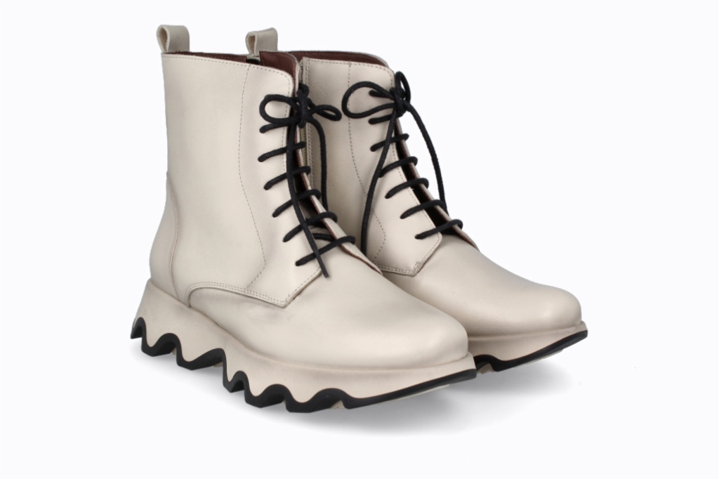 Botines de piel que combinan un diseño moderno con comodidad excepcional. Su suela ondulada añade estilo y estabilidad, mientras que el ajuste alto brinda soporte y una apariencia elegante. Perfectas para quienes buscan funcionalidad y moda en un solo calzado.