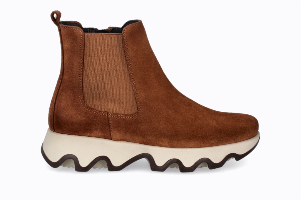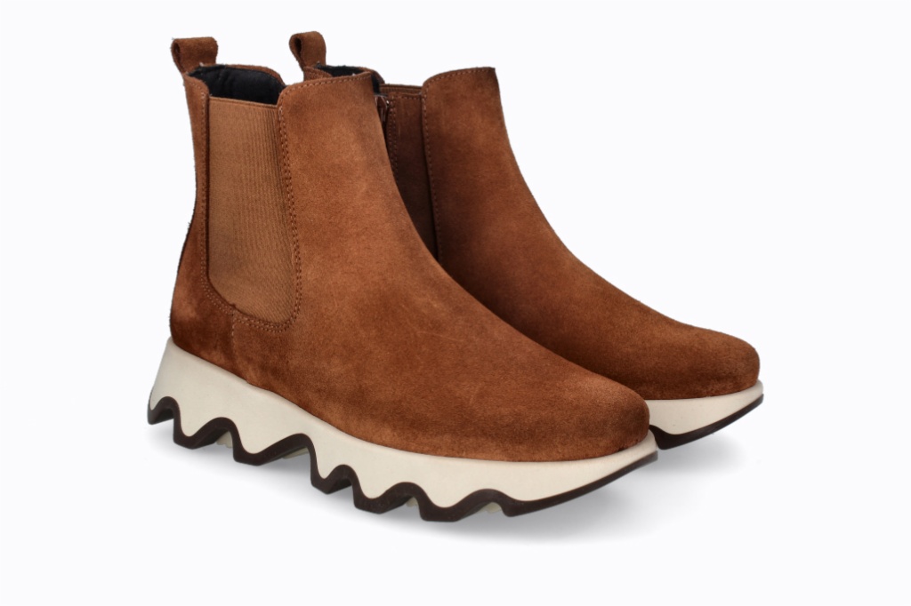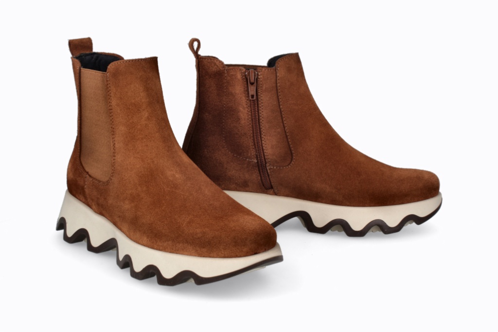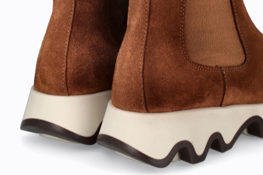 Botines de serraje que combinan un diseño moderno con comodidad excepcional. Su suela ondulada añade estilo y estabilidad, mientras que el ajuste alto brinda soporte y una apariencia elegante. Perfectas para quienes buscan funcionalidad y moda en un solo calzado.