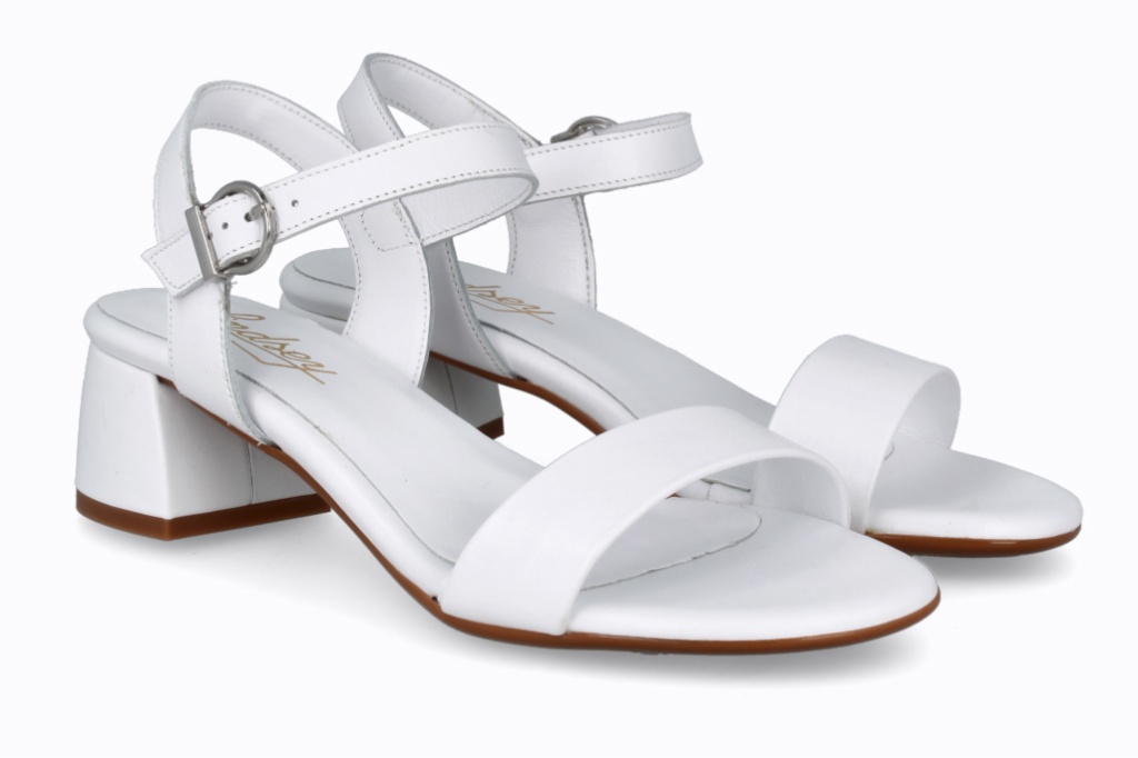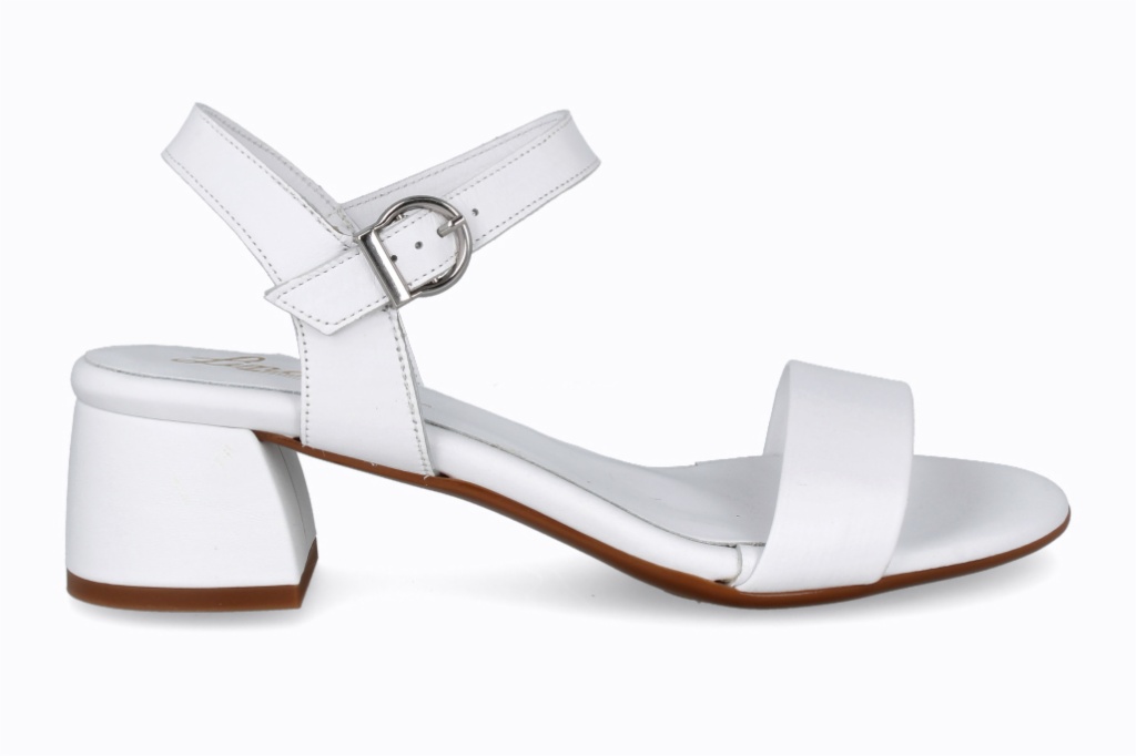 Sandalias de tacón medio con tira ancha en piel, ideales para un look fresco y elegante. Diseño minimalista con plantilla acolchada que proporciona confort durante todo el día.