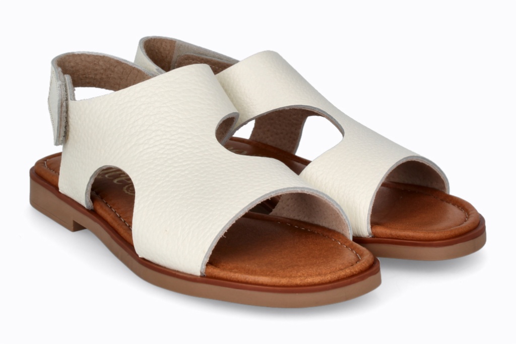 Estas sandalias combinan la elegancia de la piel con una suela de diseño ondulado que aporta comodidad y estilo. El tono blanco es versátil y atemporal, ideal para elevar cualquier look casual. Fáciles de ajustar gracias a su práctico cierre de velcro.