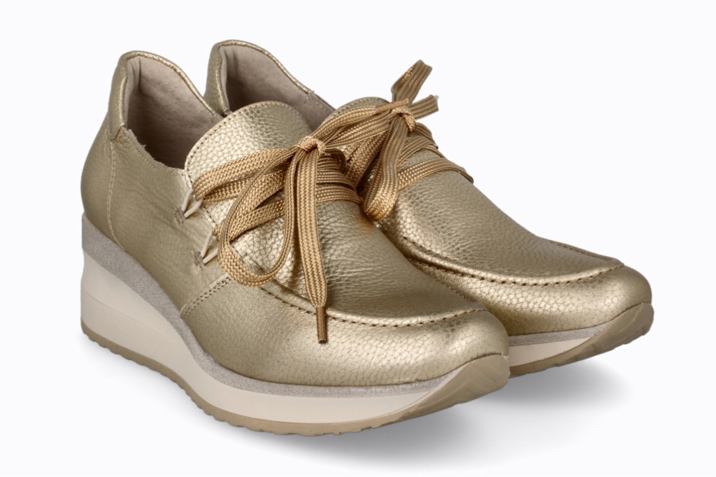 Sneaker en color dorado con un diseño moderno y atrevido. Perfectas para combinar con vaqueros en tu día a día.
