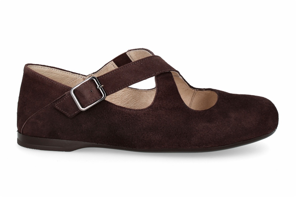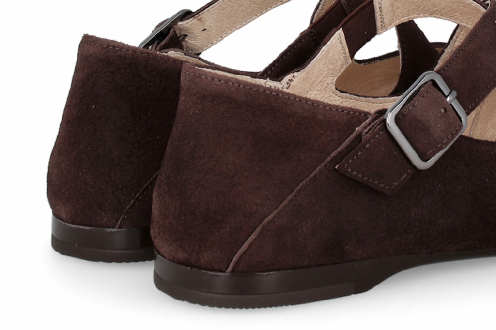 Bailarinas planas de estilo clásico Mary Jane, perfectas para un confort elegante en el día a día. Confeccionadas en suave material tipo ante, con un diseño de tiras cruzadas sobre el empeine. Cierre de hebilla ajustable en el lateral para asegurar un ajuste cómodo y firme al pie.