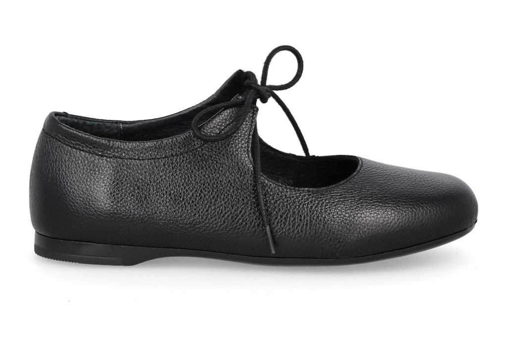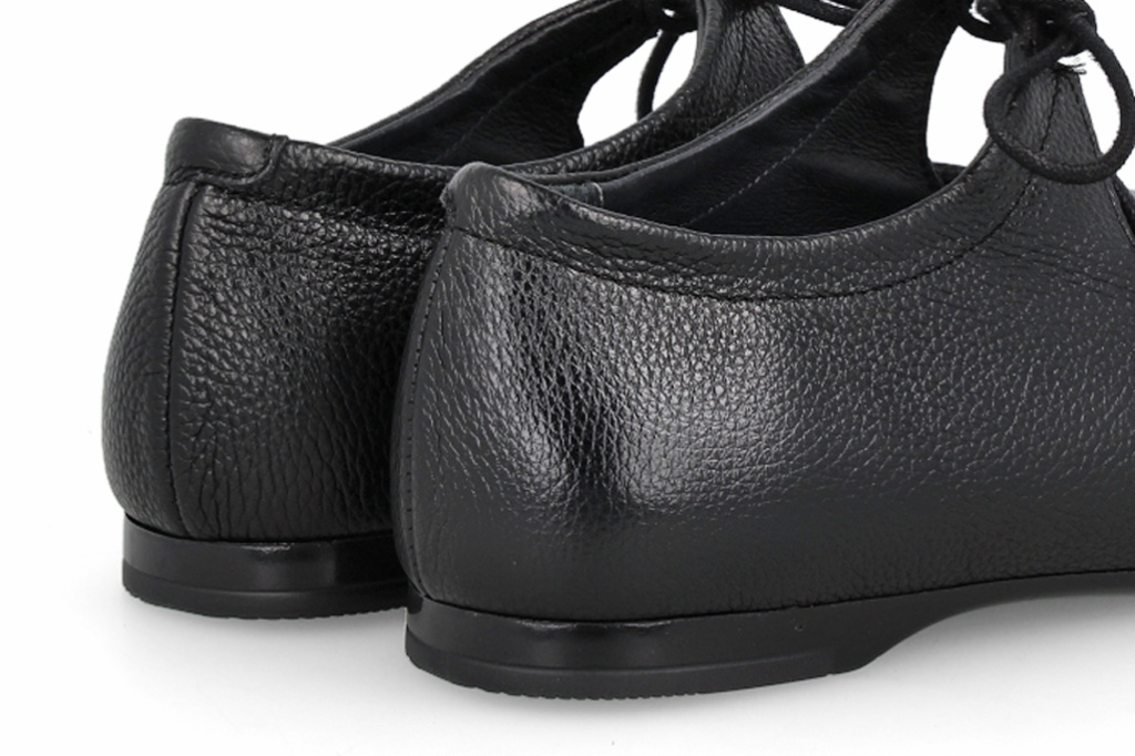 Añade un toque de sofisticación a tus pasos con estos zapatos planos de piel en color negro. Su diseño clásico con cierre de cordones que se ata al tobillo ofrece un ajuste delicado y ultrafemenino, garantizando una comodidad absoluta para llevar del trabajo a la cena.
