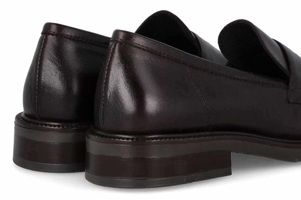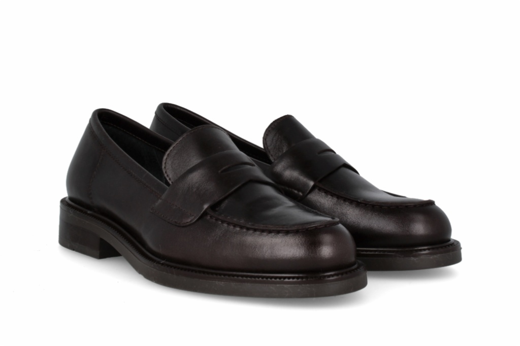 Mocasines clásicos en piel negra, con acabado liso y brillo sutil. Presentan una suela de plataforma ligera y robusta que aporta un aire contemporáneo y cómodo. Son el calzado perfecto que combina elegancia atemporal con elegancia, ideal para cualquier look de diario.