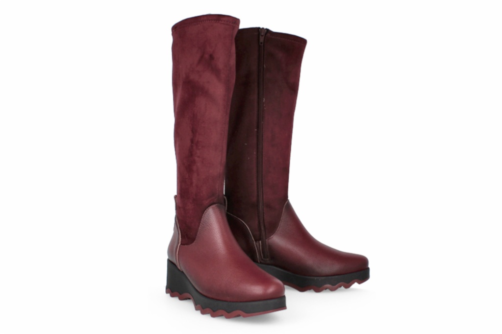 Estas botas altas en tono burgundy son la combinación definitiva de elegancia y diseño funcional, ideales para destacar en los días más fríos con un toque de color profundo.