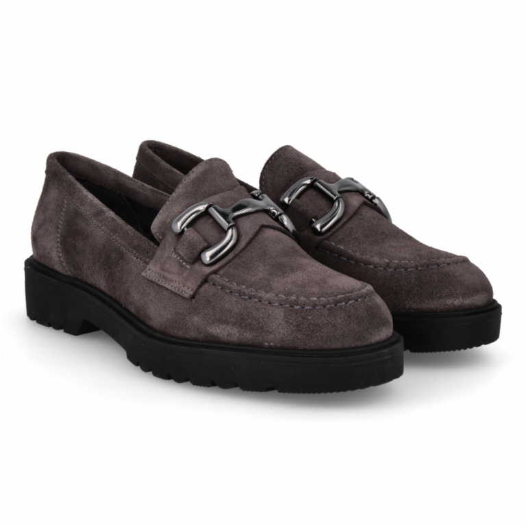 Lince Shoes presenta este zapato tipo mocasin de serraje para mujer en color gris. Su tono es muy combinable con tonos veraniegos. Un zapato muy chic, con el que no pasarás desapercibida.