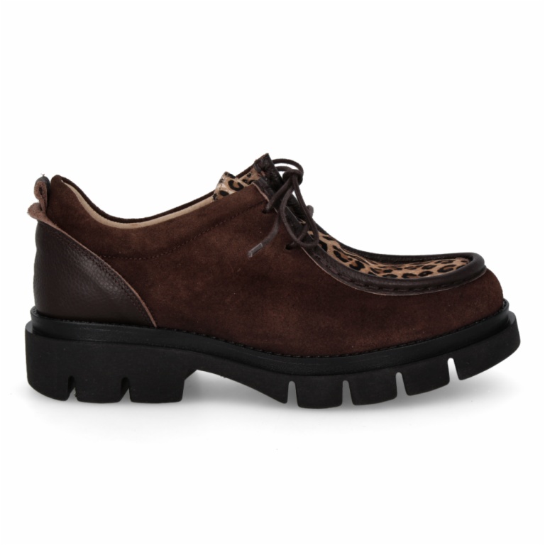 Estos mocasines redefinen el estilo con su llamativa piel de acabado metalizado en serraje combinado con animal print. El diseño de puntera cosida se combina con una suela robusta y ancha que proporciona un look vanguardista y altura cómoda. Son perfectos para inyectar un toque audaz y sofisticado a tus conjuntos diarios.