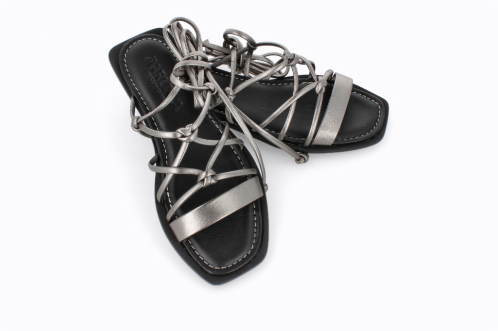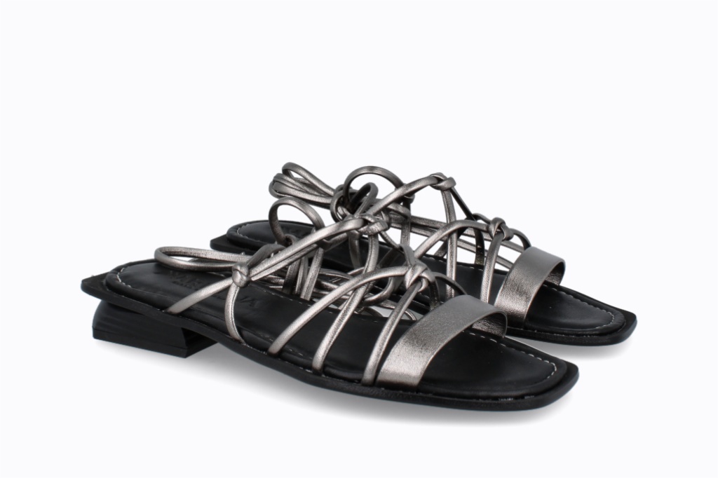 Sandalia con tacón de piel y color metalizado plomo. Vuelve a ser un imprescindible esta temporada porque combina muy bien con todo. Nosotros te lo traemos en este diseño que estiliza tu figura y que podrás llevar con cualquier outfit de temporada.