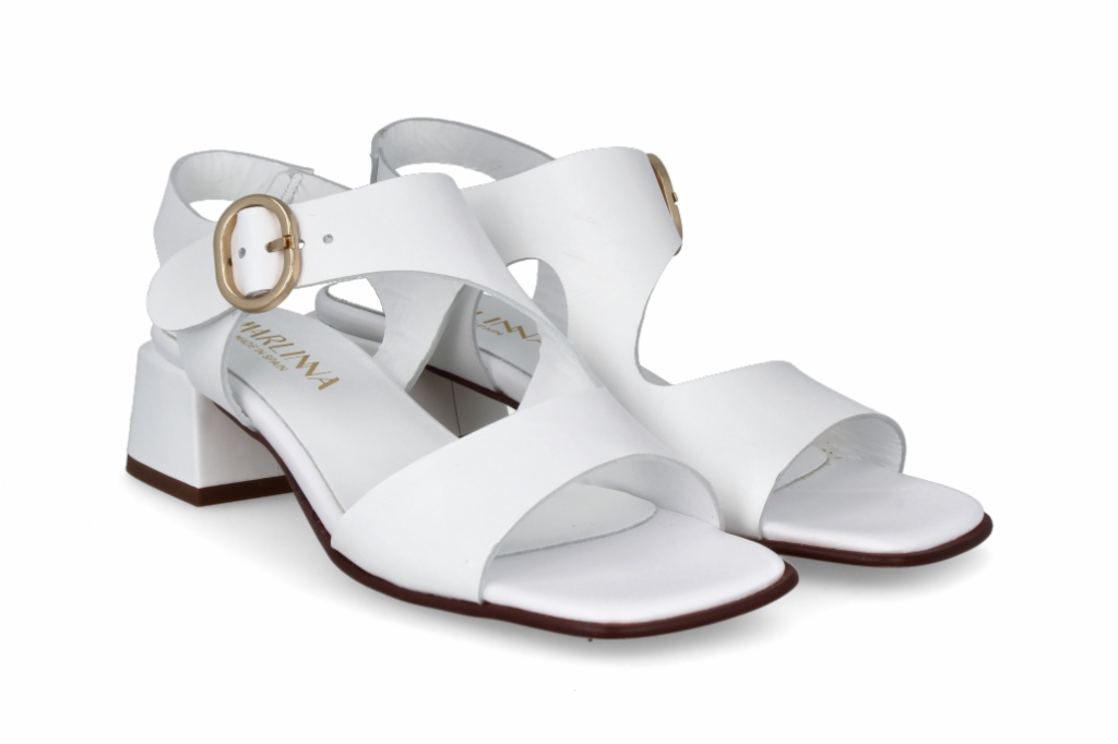 Sandalia tipo cuña de piel y color florencia blanco. Vuelve a ser un imprescindible esta temporada porque combina muy bien con todo. Nosotros te lo traemos en este diseño que estiliza tu figura y que podrás llevar con cualquier outfit.