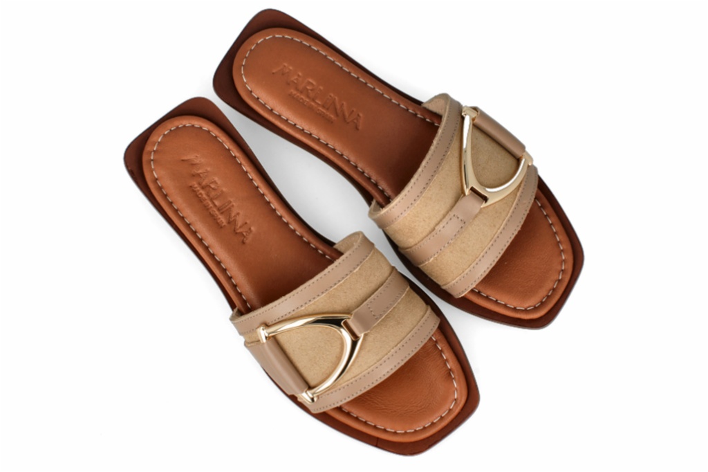Las sandalias planas color piedra con detalles dorados son una opción elegante y versátil que te permitirá crear looks sofisticados y a la moda para cualquier ocasión. El color beige es un tono neutro que combina con todo, mientras que los detalles dorados aportan un toque de glamour y exclusividad. Además, las sandalias planas te proporcionan comodidad durante todo el día.