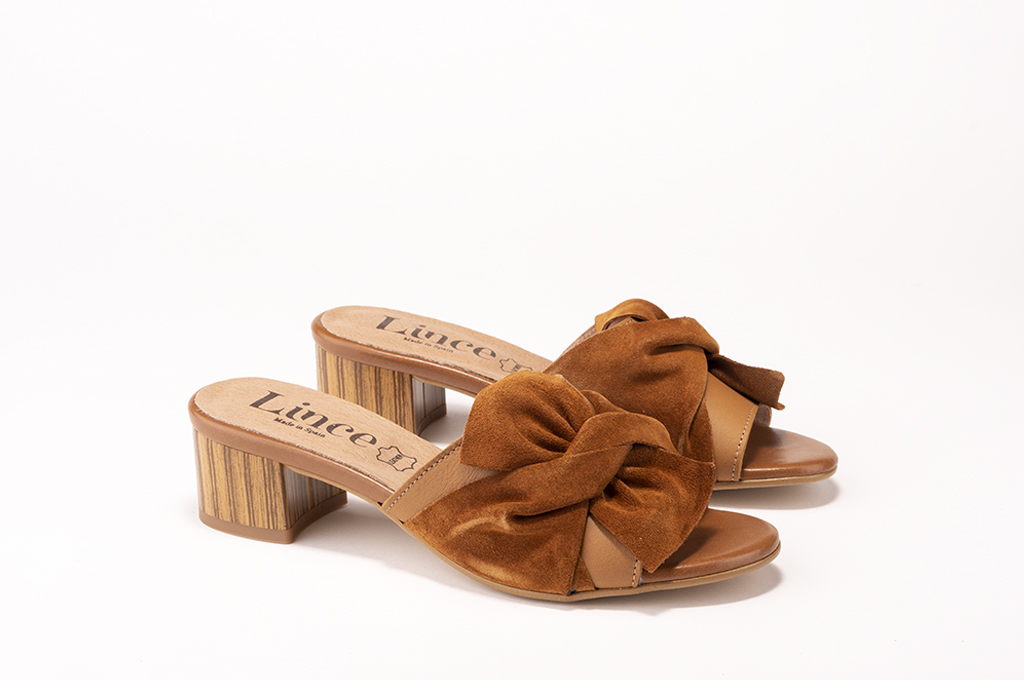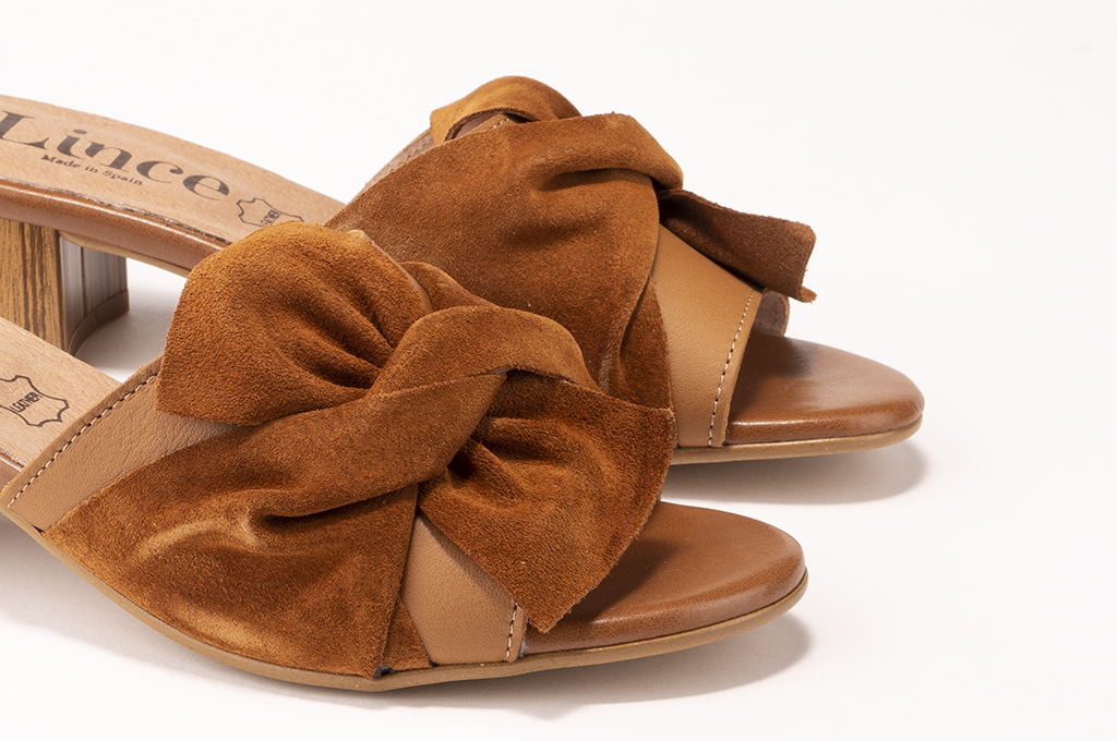 Lince Shoes propone este zapato tipo sandalia de piel serraje en forma de pala para mujer en color cuero con tacón de madera. Detalles que son tendencia, comodidad y estilo asegurados. Tira ancha delantera en forma de lazo para estabilizar el pie y proporcionarte mayor sujeción. Fabricación 100% española con materiales de primera calidad.